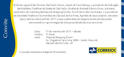 No período de 17 a 25 de setembro próximo, a cidade de São José do Rio Preto será palco de mais um grande evento filatélico e numismático, realizando a maior exposição de selos postais, cédulas e moedas do estado de São Paulo. A Expofinter 2011 – Exposição Filatélica do Interior, promete agitar os meios filatélicos e numismáticos da cidade e região. A exposição, que contará com a participação de colecionadores de todo o estado de São Paulo, encerra as comemorações dos 60 anos da Sociedade Filatélica e Numismática de São José do Rio Preto, fundada em 03 de maio de 1951.